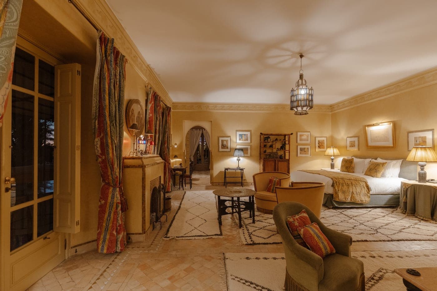 Bill Willis furnished it. Willis was an American architect who arrived in Marrakech in the 1960s and never entirely left. His most cited early commission was the redesign of the residence adjacent to Jardin Majorelle for Yves Saint Laurent and Pierre Berge, a project that established his reputation in the city and beyond. His approach created what he described as a delicate marriage of Moroccan legacy and baroque opulence: audacious furnishings, sculptural pieces, and a layered density of surface that resists easy reduction to any single style.