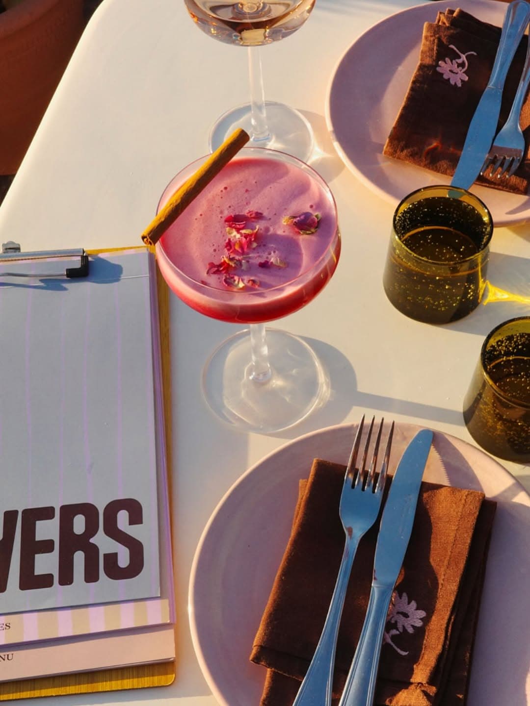 The rooftop terrace is the primary register. At lunch, with the sun working from above and plates arriving without urgency. At sunset, when the light shifts over the rooftops and the city holds that still, warm tone that lasts less than an hour. The indoor dining room on the lower floor offers something different: more contained, better suited to cooler evenings or those who prefer a less exposed meal.