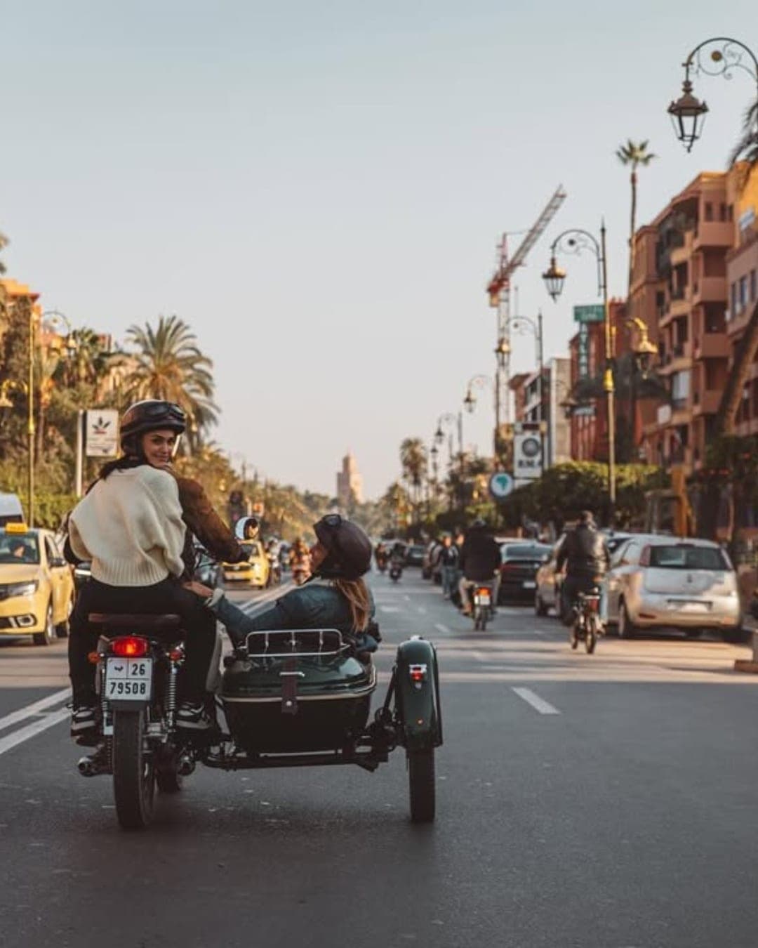 Marrakech Insiders operates with a precise proposition: a vintage sidecar motorcycle, a local guide, and a city seen at low speed. Tours are fully private and move through the medina, the Palmeraie, or further depending on the route chosen. The format combines time in the vehicle with walking moments, which means the sidecar is the context and the on-foot segments are the focus.