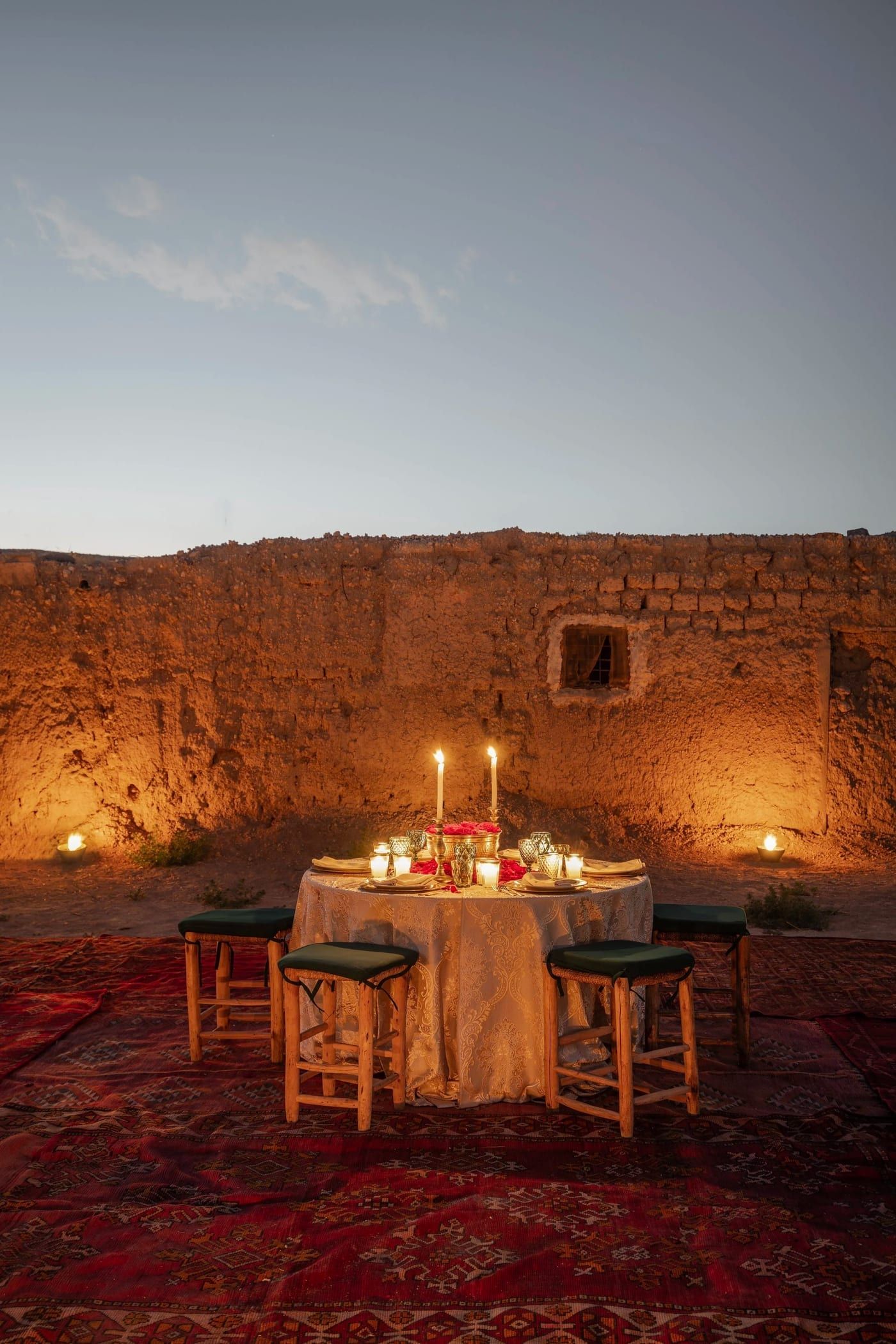 When Meryanne first arrived in Marrakech in 1985, the Palmeraie was a different place: scattered hamlets, adobe construction, open countryside dotted with sheep. Over the following decades, rising land values dissolved most of that world. Concrete replaced earth. The original character of the grove became harder to read. At the centre of the Karwan site, a rare adobe house survives, one of the few remaining examples of pre-development Palmeraie architecture. Preserving it was not incidental to the project. It is the project's centre of gravity, the fixed point around which the tents are arranged in deliberate dialogue.