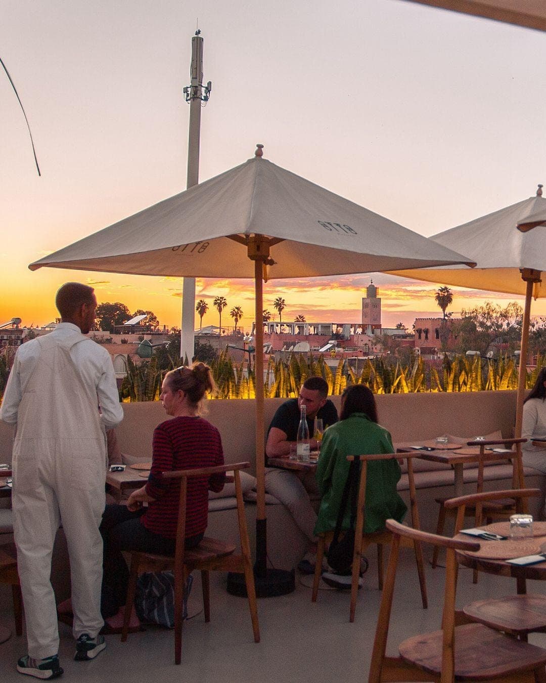 This is not simply the end of summer. It is a shift in register. The days in September still reach 33 to 35 degrees in the early weeks, and the afternoons retain something of summer's logic: pool access, shaded courtyards, the extended lunch that does not end until the air cools around five. But the evenings are different. The temperature drops to 19 or 20 by night, and the city opens itself to the outdoors again with a generosity that July and August, for all their particular pleasures, could not sustain. Rooftop dining, which in summer was a late-night proposition arrived at after the heat had passed, becomes a dinner-from-eight possibility in late September, the air warm and still, the Atlas visible in the distance.