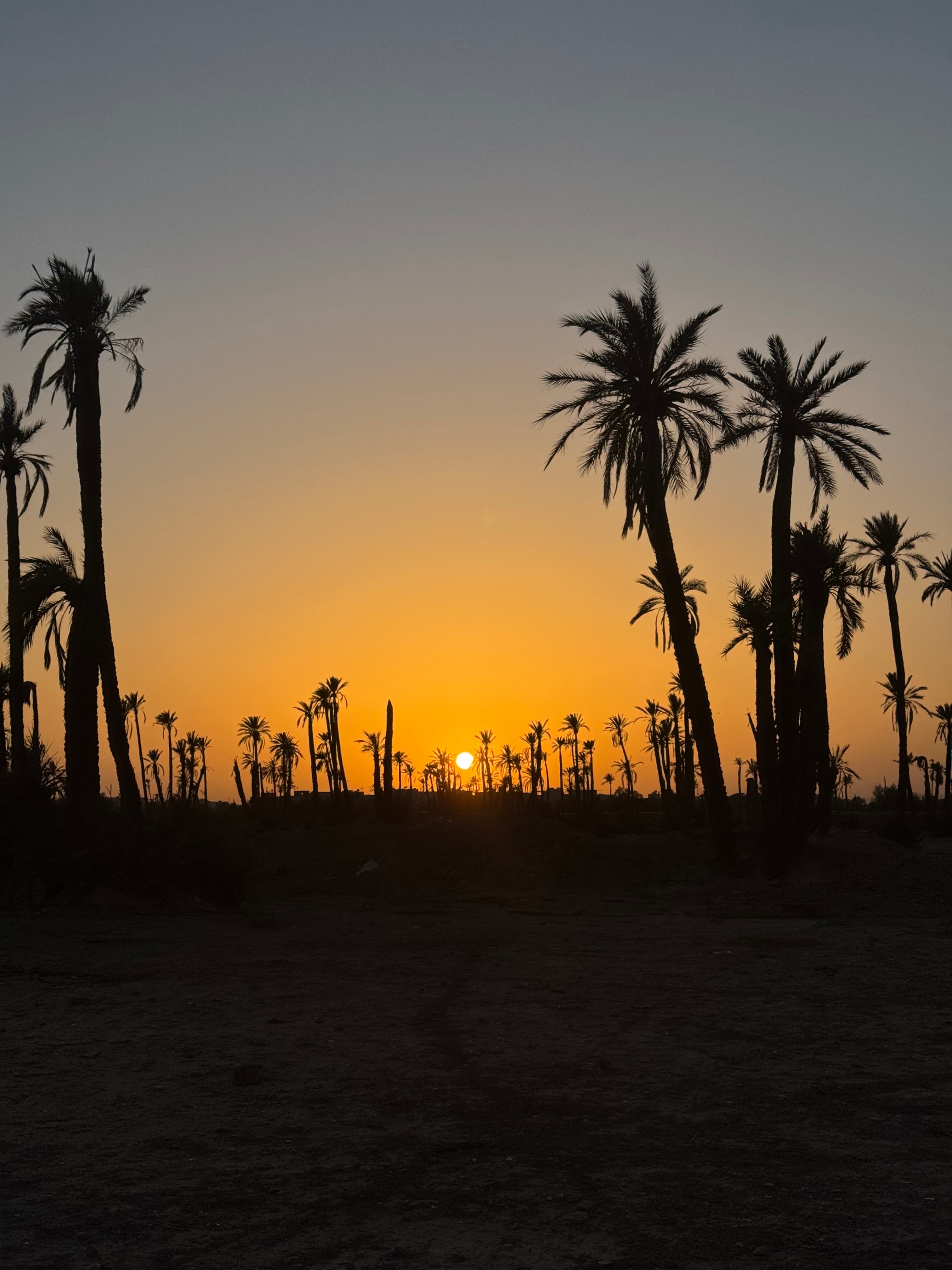 The origin story is a legend, offered as such. According to tradition, the grove emerged from date stones discarded by soldiers of the Almoravid dynasty in the eleventh century, a landscape born from casual waste, from seeds dropped in passing. Whether the history is accurate matters less than what the image suggests: that the Palmeraie was not designed, not planned as a destination, but arrived at gradually, through accumulation and time and the basic logic of growth in a semi-arid environment. Thirteen thousand hectares of palm groves stretching north of the city, shaped now by irrigation systems, golf courses, private compounds, and the productive olive groves that give the landscape its secondary agricultural character.