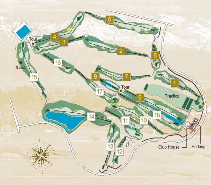 Noria Golf Club Marrakech is an 18-hole, par 72 championship course designed by Steve Forrest. The course is characterized by its lush fairways, numerous water hazards, and strategically placed bunkers. Its unique design blends seamlessly with the natural landscape, offering stunning views of the Atlas Mountains. Noria Golf Club caters to golfers of all levels, providing both a challenge and an enjoyable experience.