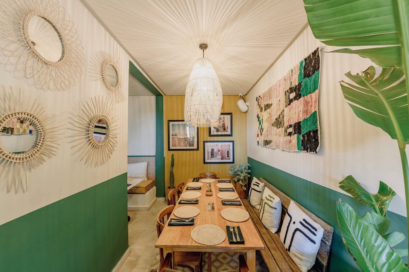 L'mida's stylish interior is designed with a mix of traditional Moroccan elements and contemporary touches, creating a warm and inviting atmosphere. The rooftop terrace offers stunning views of the Medina and the Atlas Mountains, making it a popular spot for sunset drinks and dinner.