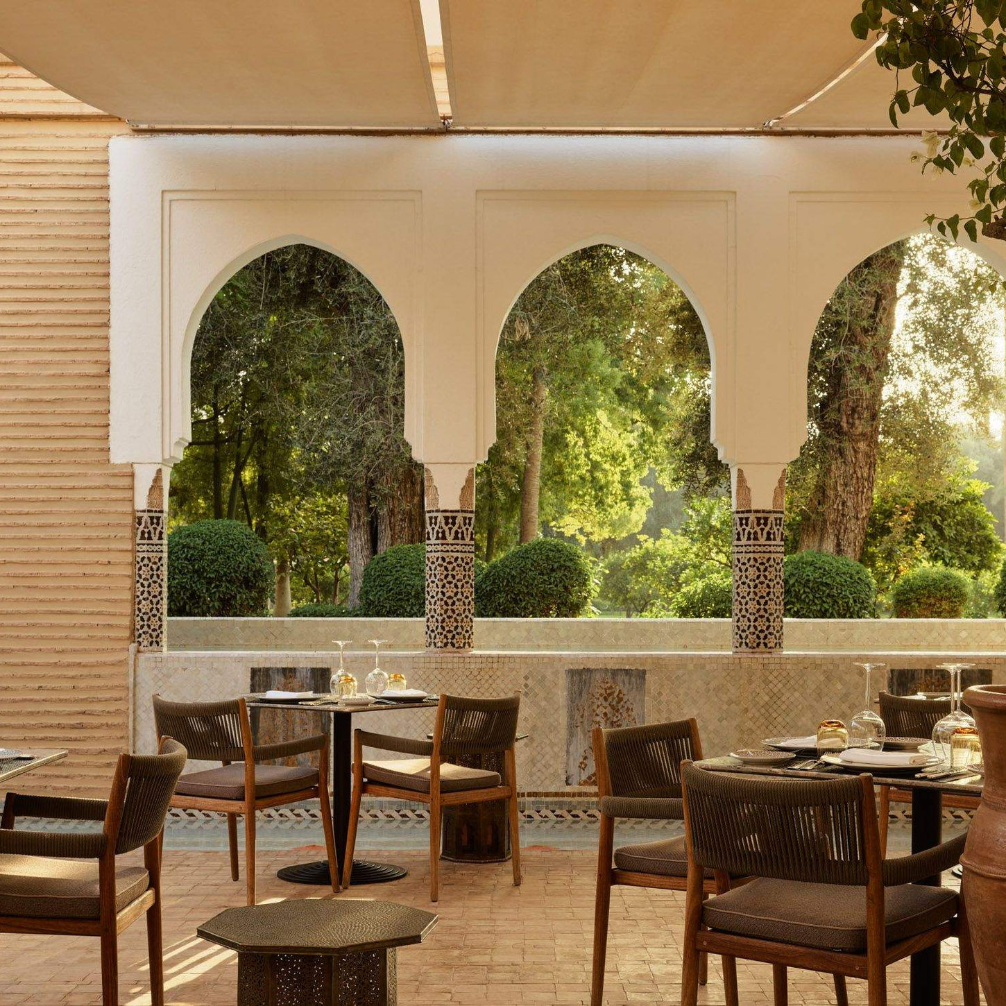 Le Marocain boasts a lavish setting, with intricate Moorish architecture, ornate tilework, and handcrafted furnishings. Guests can choose to dine indoors in the opulent dining room or outdoors on the terrace, surrounded by the hotel's lush gardens. The restaurant also features live traditional music, adding to the authentic Moroccan ambiance.