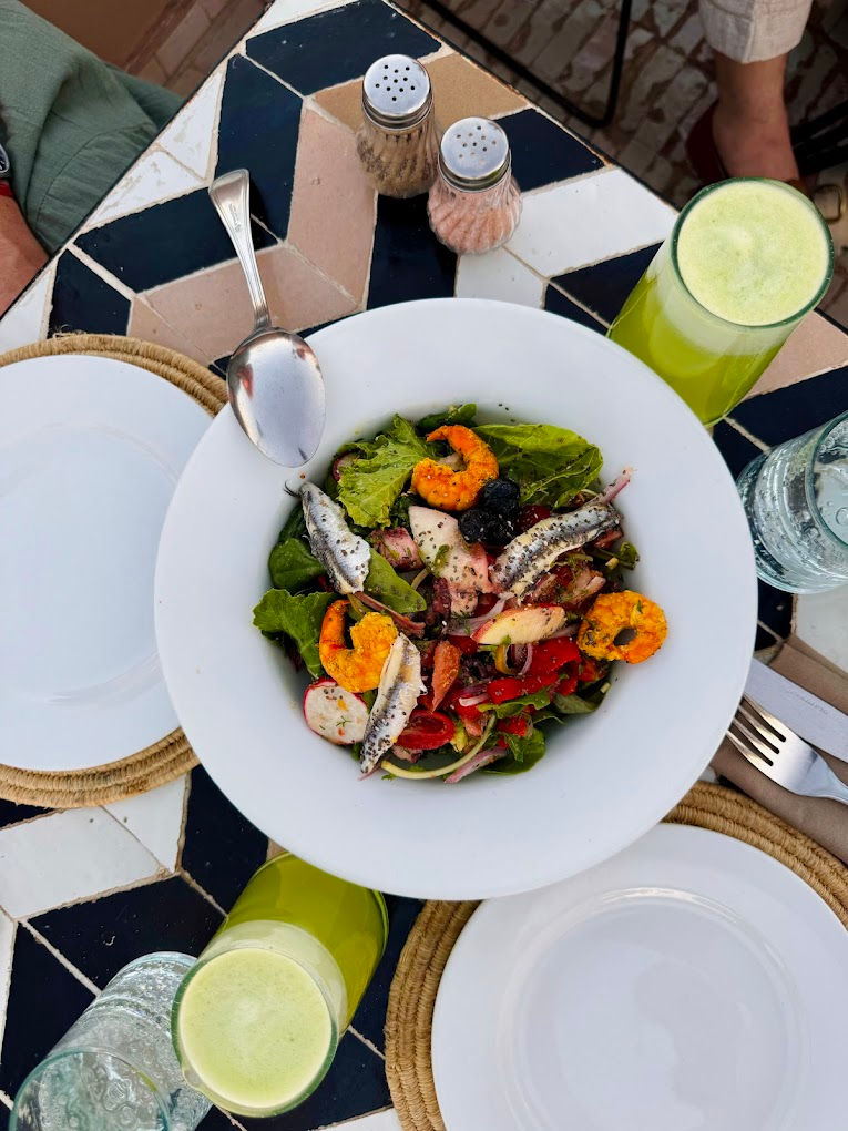 Nomad is a popular rooftop restaurant in Marrakech, located in the heart of the Medina overlooking the spice market. It offers a modern take on traditional Moroccan cuisine, using fresh, seasonal, and locally sourced ingredients. The menu features a variety of dishes, including tagines, couscous, grilled meats, and salads, all with a creative twist.