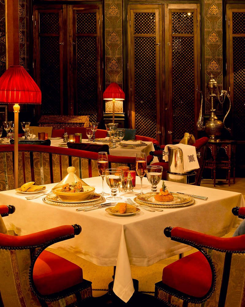 Assyl Restaurant, located within the Selman Marrakech hotel, offers an authentic and refined Moroccan dining experience. The restaurant's ambiance is opulent and elegant, featuring lofty ceilings adorned with artwork, intricately painted woodwork, shimmering chandeliers, and live music. The menu showcases the culinary treasures of Morocco, prepared by a team of skilled female chefs known as "dadas." Guests can savor a variety of traditional Moroccan dishes, including tagines, couscous, and pastillas, all made with fresh, local ingredients and presented with artful elegance.